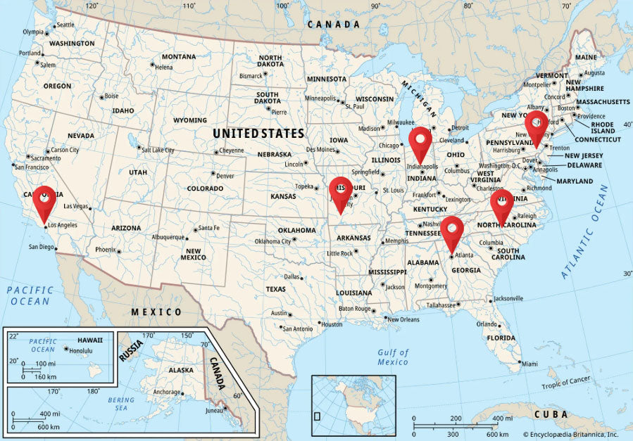 We operate 6 fulfillment centers across the U.S., ensuring fast and reliable delivery — wherever you are.
